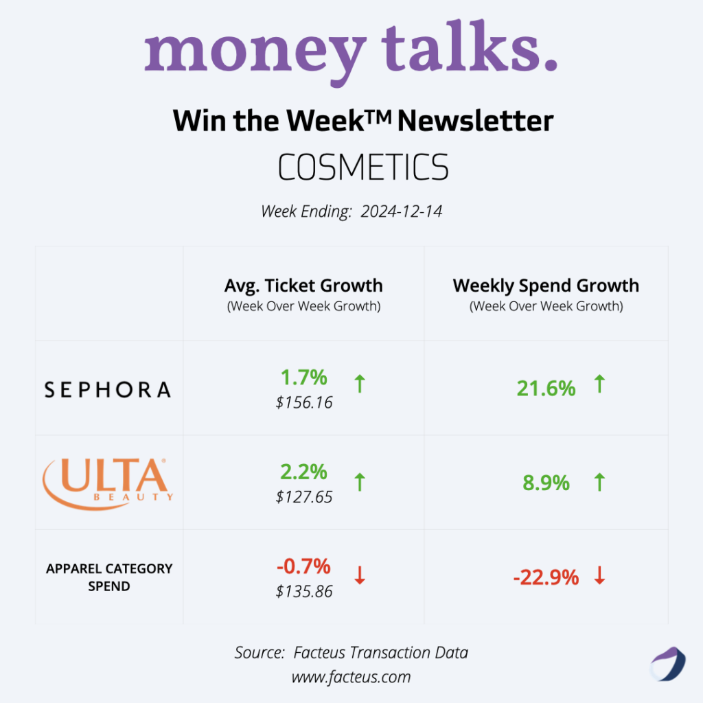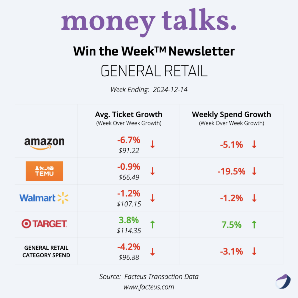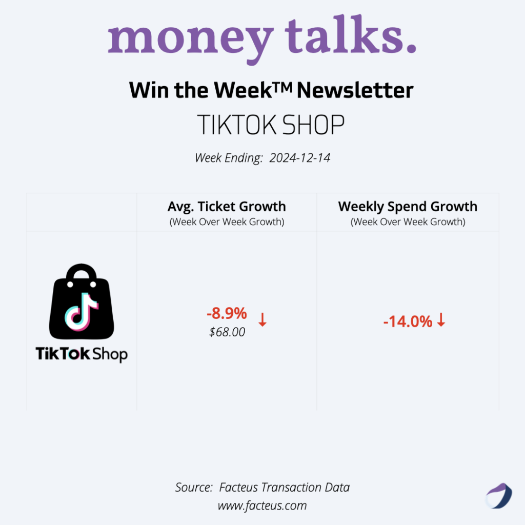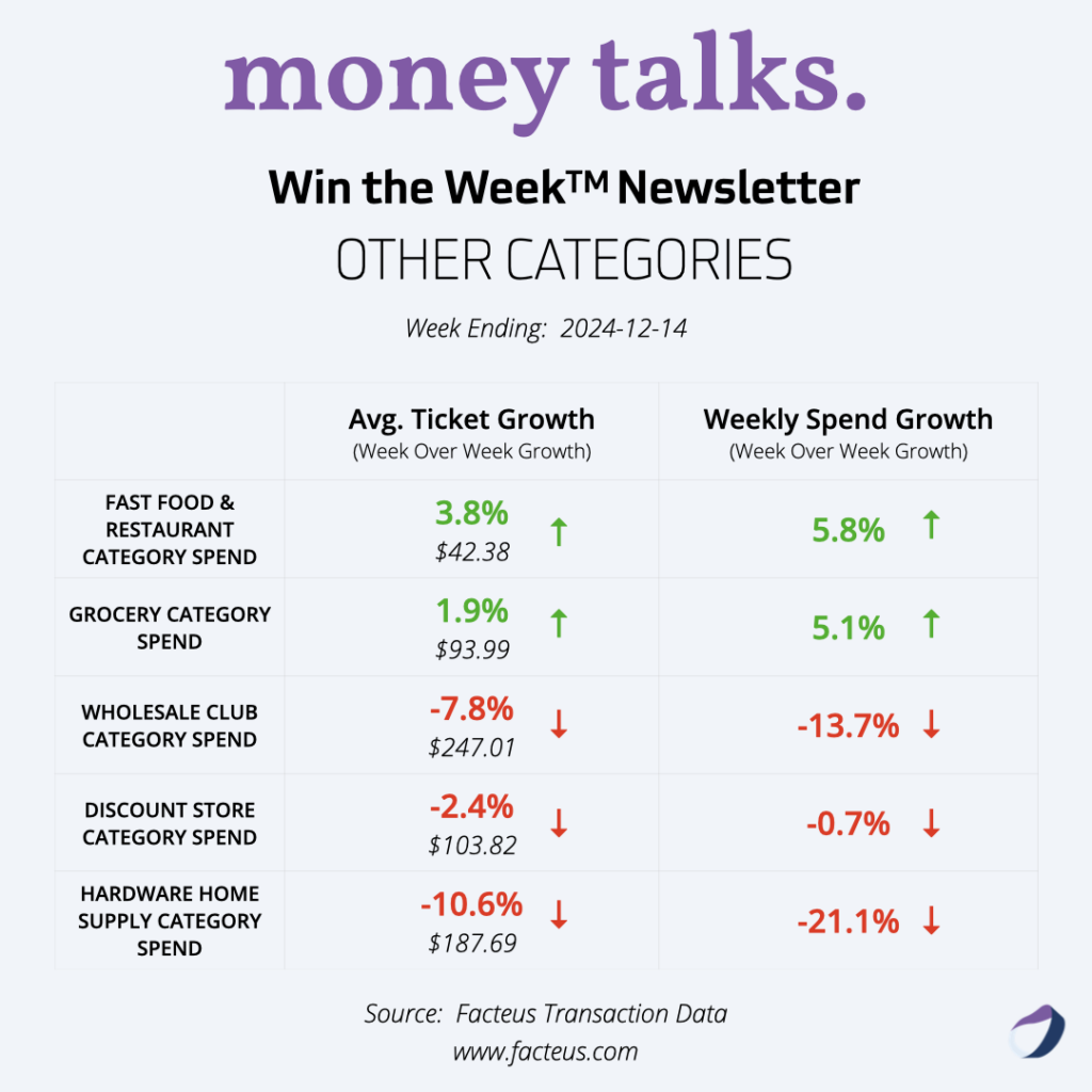 Welcome to our latest edition of the Win the Week newsletter, covering consumer spending trends for the week ending December 14, 2024. As we move into mid-December, we’re seeing interesting shifts in holiday shopping patterns.